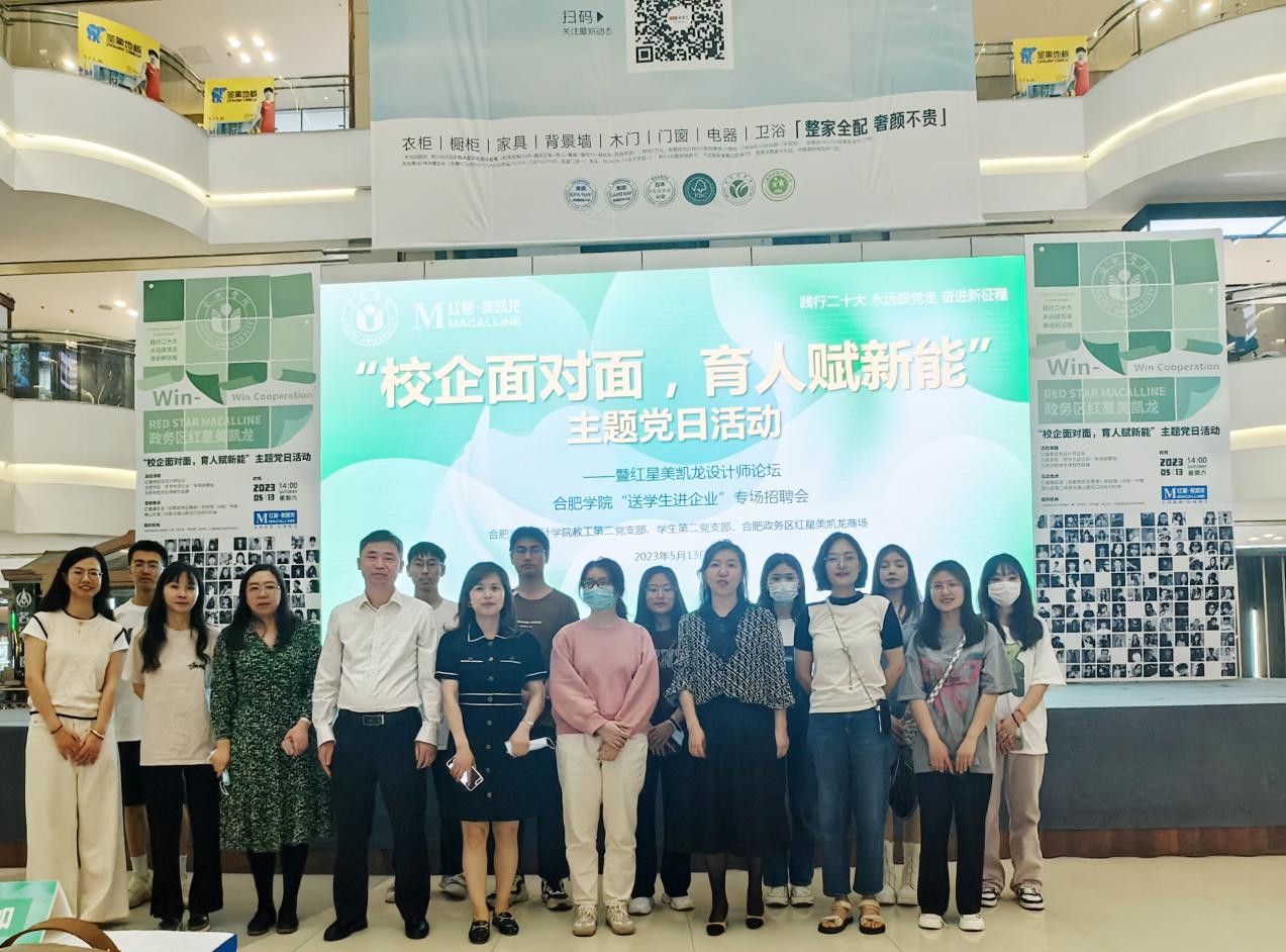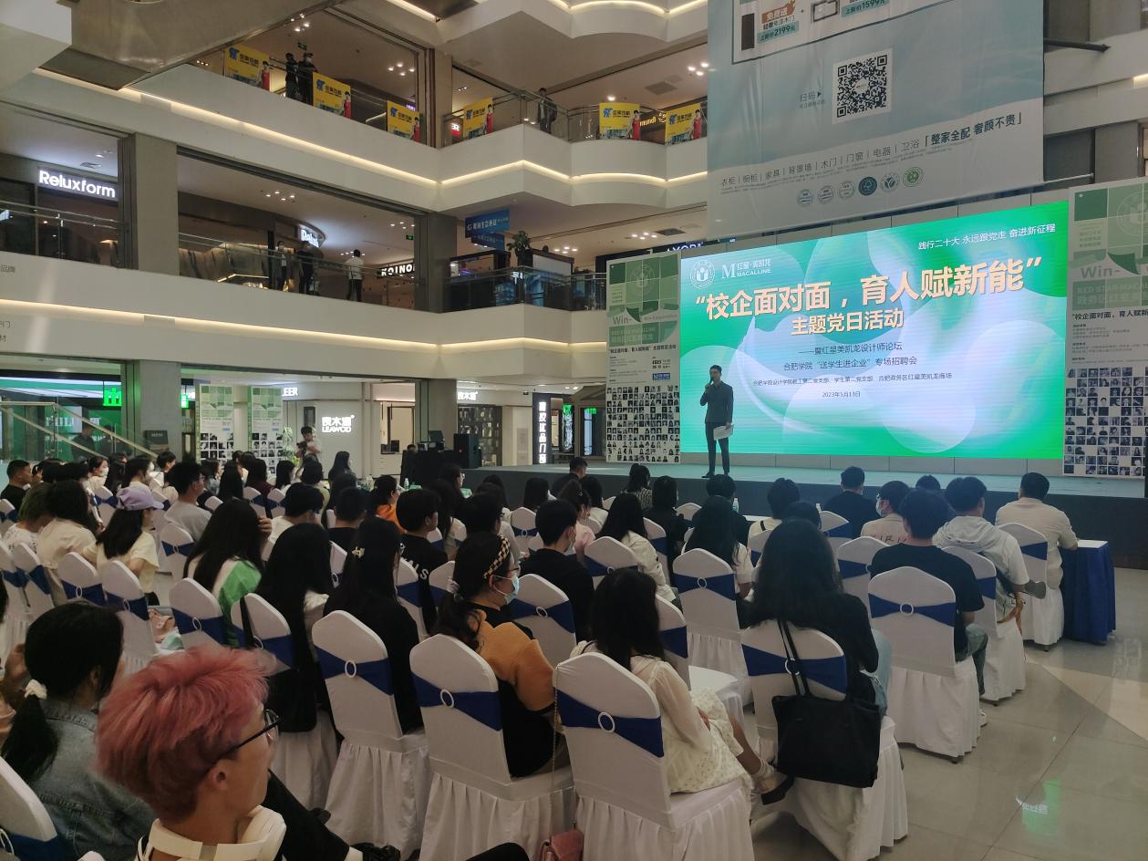 為提升設計學院教工、學生黨支部建設水平,發揮黨員特色服務先鋒作用,進一步拓寬畢業生就業渠道,提升精準就業服務水平,5月13日,合肥學院設計學院教工第二黨支部、學生第二黨支部聯合紅星美凱龍在政務區紅星美凱龍商場舉辦了“校企面對面,育人賦新能”主題黨日活動暨紅星美凱龍設計師論壇。設計學院教工第二黨支部書記、空間設計系主任水源、徐賢如、呂琴琴、張行舟等專業老師出席,學生第二黨支部全體黨員參加。