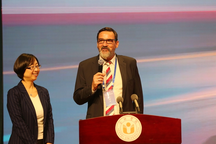 10月28日下午,第十四屆中德應用型高等教育研討會精彩繼續,開幕式后進入大會報告和主題報告環節,報告環節由奧斯納布呂克應用科學大學對華高等教育中心學術主任、經濟與社會學院教學院長、合肥學院客座教授亨德里克?拉克勒教授主持。