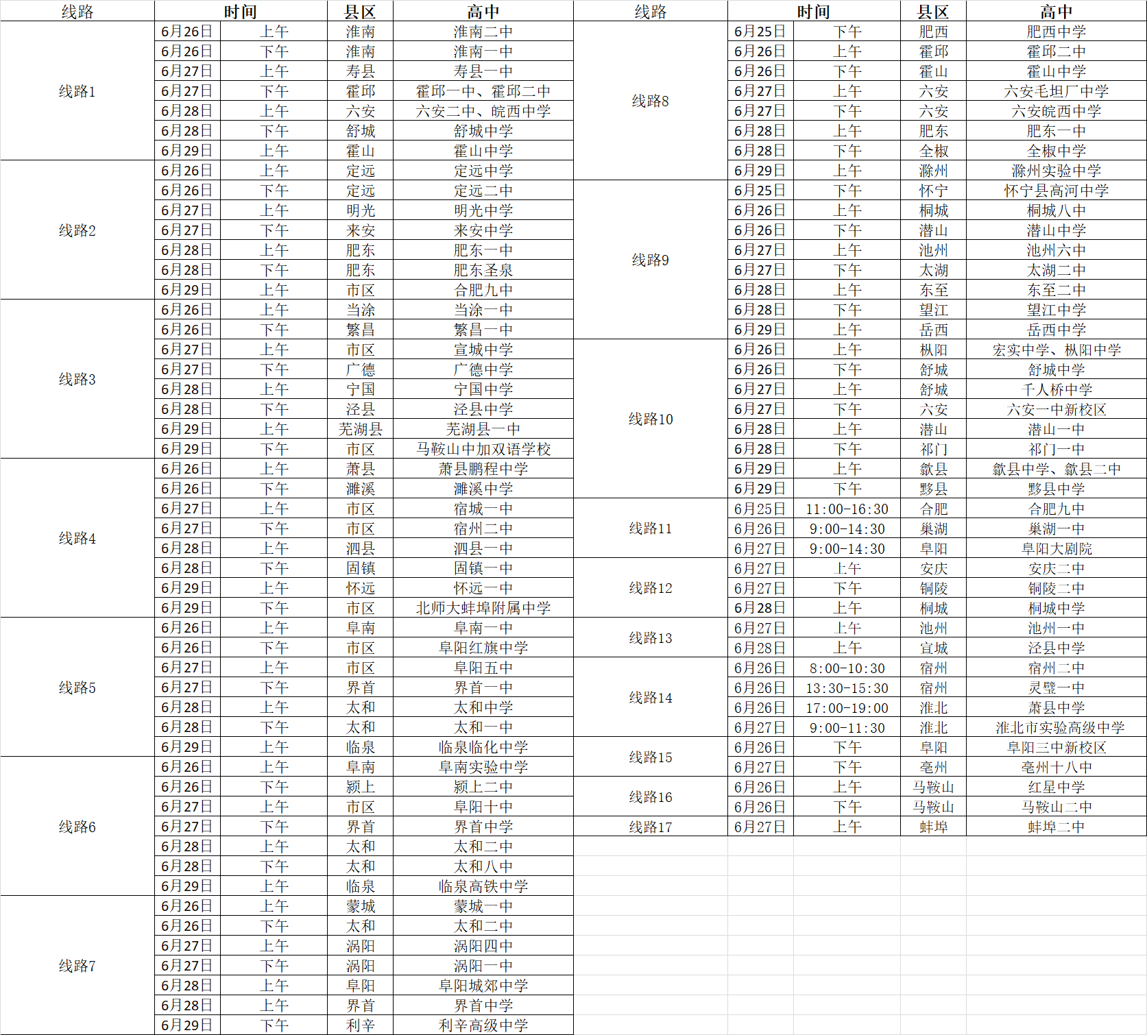 合肥大學安徽省內主要地市中學現場志愿填報咨詢會安排表