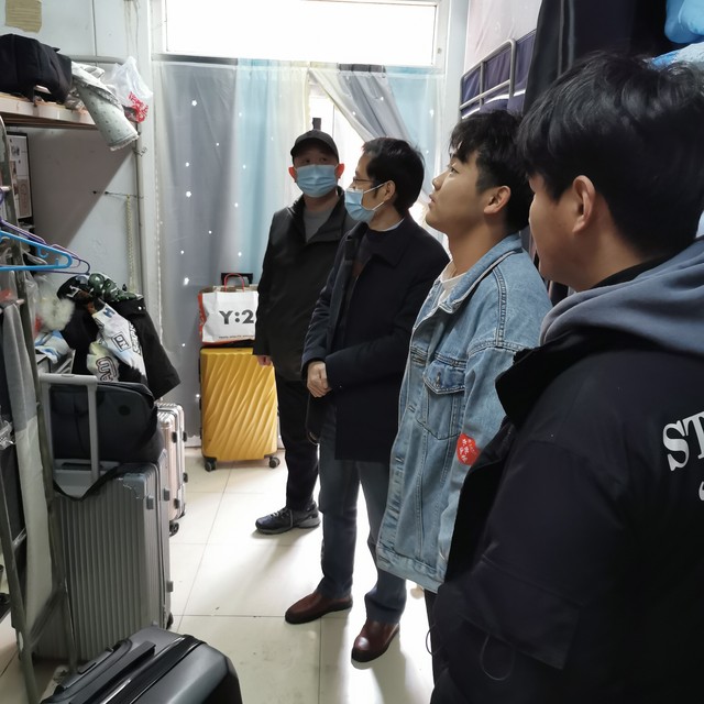 探望期間,各位領(lǐng)導(dǎo)與學(xué)生親切交流,詢問學(xué)生寒假期間有何收獲,返校過程中是否順利,能否及時調(diào)整并適應(yīng)新的大學(xué)生活。現(xiàn)場學(xué)生們肯定的回答了問題,師生關(guān)系融洽。而后,領(lǐng)導(dǎo)表示,正值疫情防控期間,又是學(xué)院學(xué)生返校之際,學(xué)院應(yīng)當(dāng)充分重視學(xué)生返校期間的疫情防控問題,包括學(xué)生入校,食宿等多個方面。同時,希望學(xué)生保持高度的安全防范意識,注意自身防護與身體健康,明確表示疫情和健康問題不容松懈;希望學(xué)生盡快適應(yīng)合肥的天氣狀況,及時更換衣物,調(diào)整狀態(tài),保持良好的生活習(xí)慣,以高度的熱情,更好的面對即將開始的新學(xué)期、新生活。談話過程中,領(lǐng)導(dǎo)們從點滴處,生活問題上與學(xué)生進行交流,盡顯對本院學(xué)生們的關(guān)心與重視。最終,本次看望活動在溫暖的笑意之中結(jié)束。