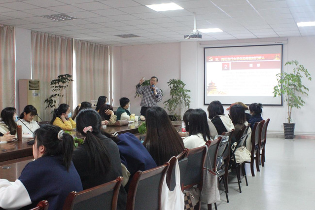 課程伊始,姚教授首先對同學(xué)們有著積極向黨組織靠攏的志向與理想表示肯定與贊賞。緊接著,姚教授向同學(xué)們介紹了現(xiàn)階段我國發(fā)展的目標(biāo)與規(guī)劃,講述了我國改革開放以來取得的巨大成就與改變。與此同時,姚教授還與同學(xué)們一同回顧了中國共產(chǎn)黨光榮的艱辛歲月,使得同學(xué)們在感悟到當(dāng)今幸福來之不易的同時,更加堅信堅持黨的領(lǐng)導(dǎo)的正確性與必要性,增強(qiáng)了同學(xué)們的愛國熱情和振興祖國的責(zé)任感與使命感。最后,姚教授提出:作為新時代大學(xué)生,同學(xué)們要自覺擔(dān)當(dāng)民族復(fù)興大任,勇做時代新人,堅持中國特色社會主義道路,高舉中國特色社會主義偉大旗幟。他從理想、奉獻(xiàn)、實干、創(chuàng)新等方面對同學(xué)們提出具體的要求與建議,為同學(xué)們不斷提升自我提供了指導(dǎo)與方向。