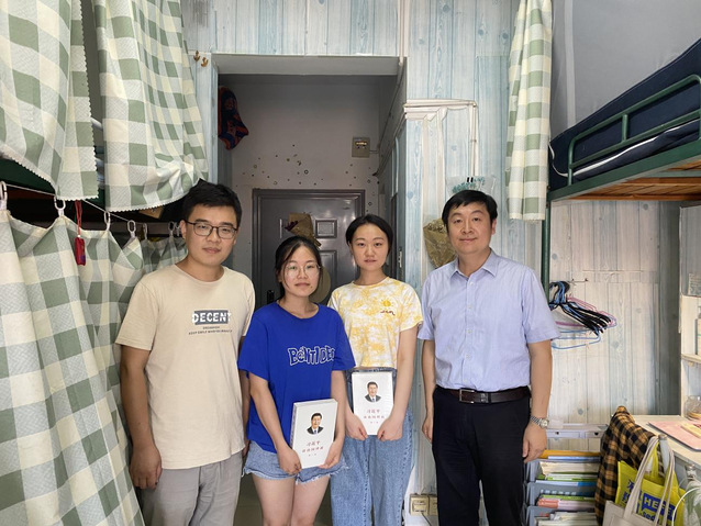 在走訪過程中,兩位老師親切地與畢業生們進行了交談,關切詢問每一位畢業生的生活狀況與就業去向,認真聽取他們的心聲,及時疏導畢業生們的困惑并予以鼓勵。同時,老師們再三叮囑畢業生們仔細核對離校的注意事項,務必做到文明離校、安全離校,切記保護自身安全。此外,在此次走訪看望畢業班學生黨員活動中,朱濤與劉政兩位老師贈送給每一位畢業班學生黨員一本《習近平談治國理政》,朱濤老師表示,希望每一位學子能夠深悟其中原理,認真學習黨史,了解做人做事的大方向、大道理與大智慧,把握住未來的發展方向,迎難而上,為社會做出貢獻。畢業生們在交談中也表達了對母校的留戀與對老師的感恩,并表示一定不忘母校栽培,不忘老師囑托,在未來繼續努力,為校爭光。