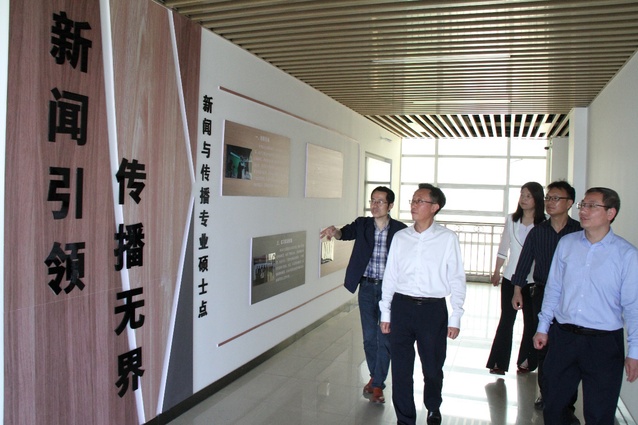 調研期間,吳功福一行還深入語言文化與傳媒學院實驗實訓中心,考察了學院研究生實驗中心、新聞編輯實驗室、多媒體語音實驗室。